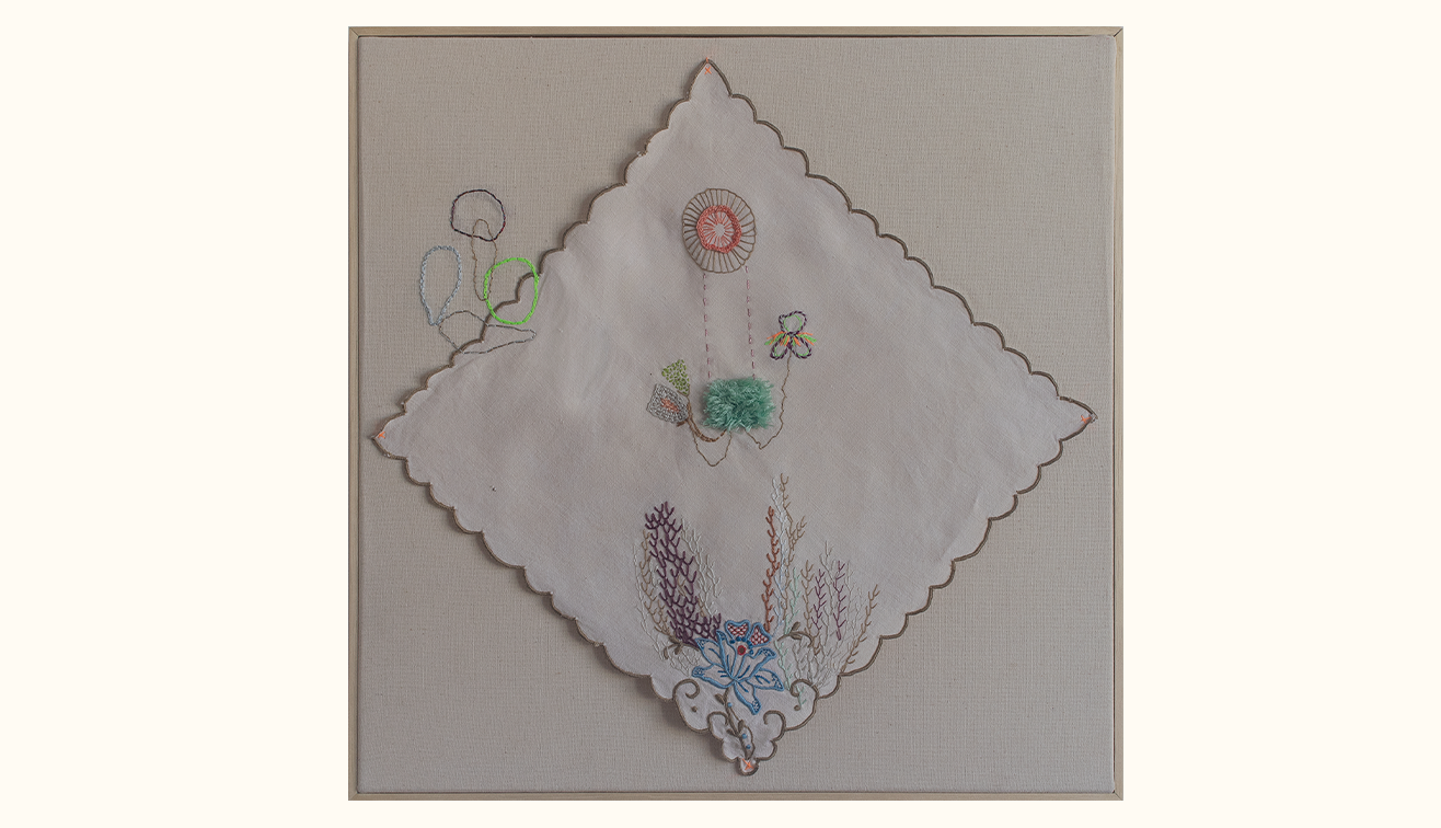 bordado sob tecido 36x36cm